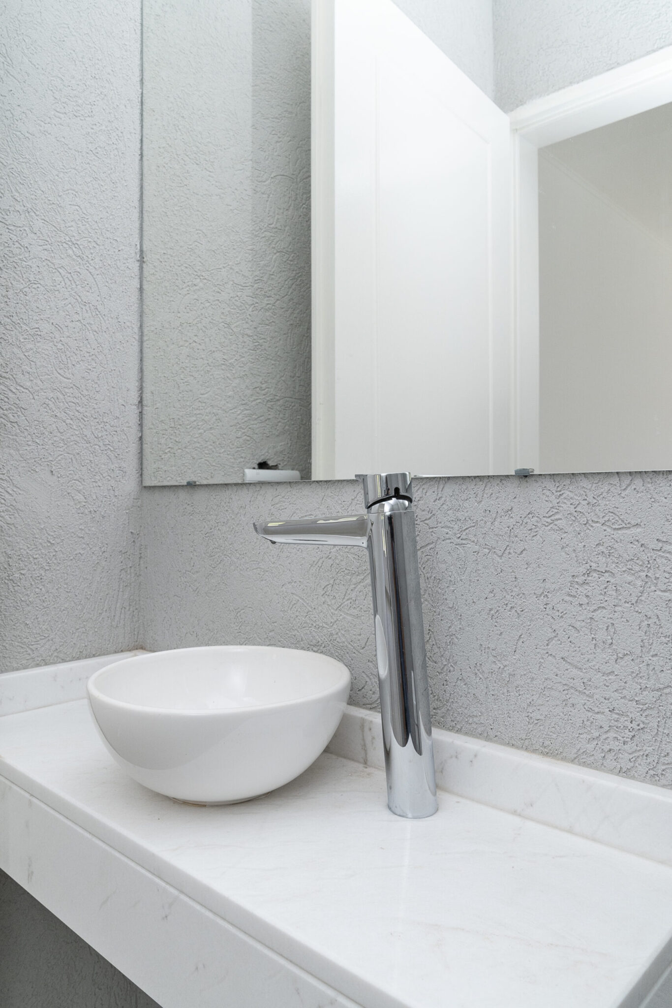 – vanitories confeccionados en mármol travertino blanco a medida en baños principales y toilette