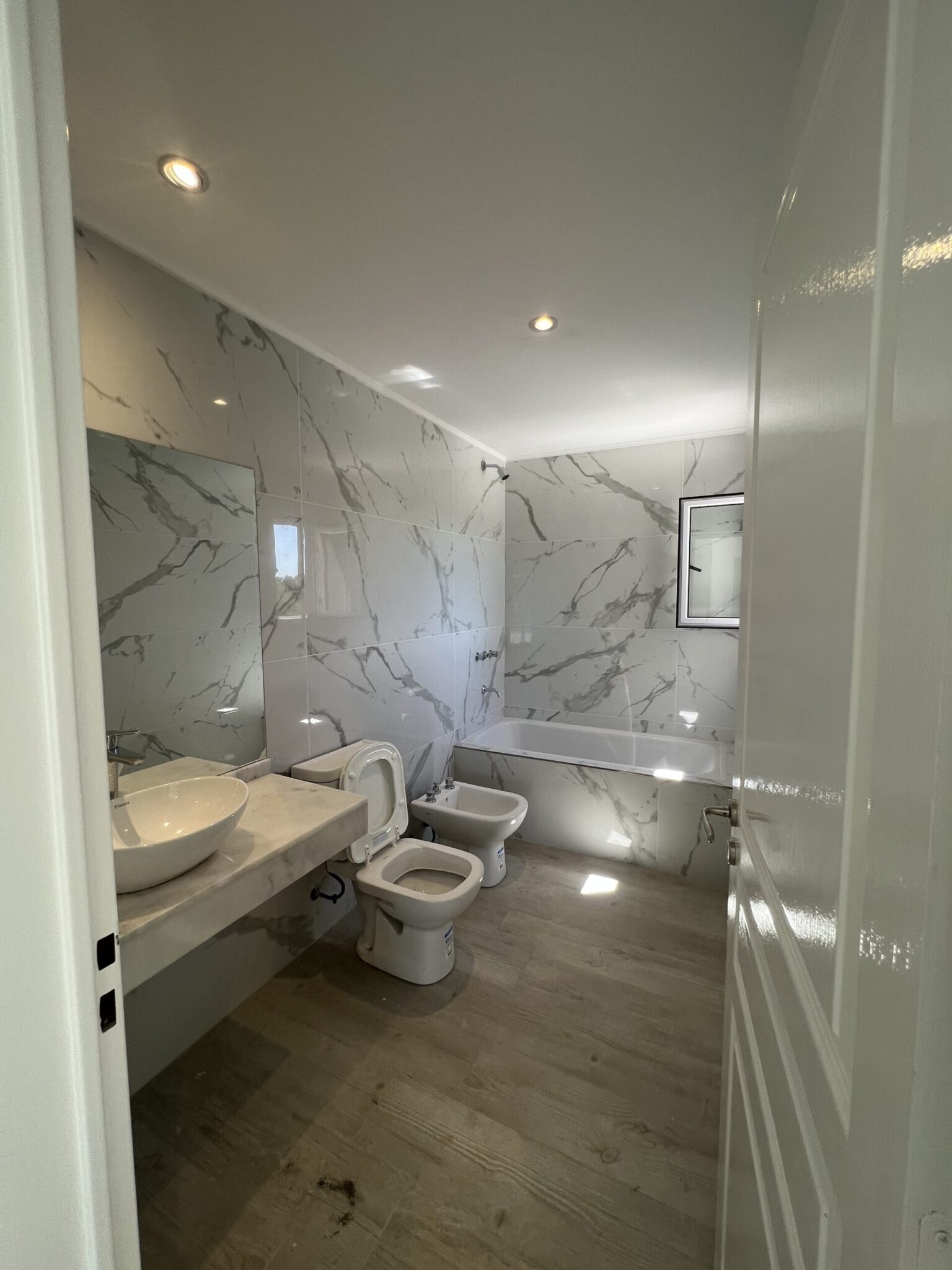 – pisos porcelánicos simil madera en todos los ambientes interiores y revestimiento en baños sector ducha e inodoro/bidet 1 hilada de altura. O opcion porcelanatos e grandes dimensiones 80 x 80