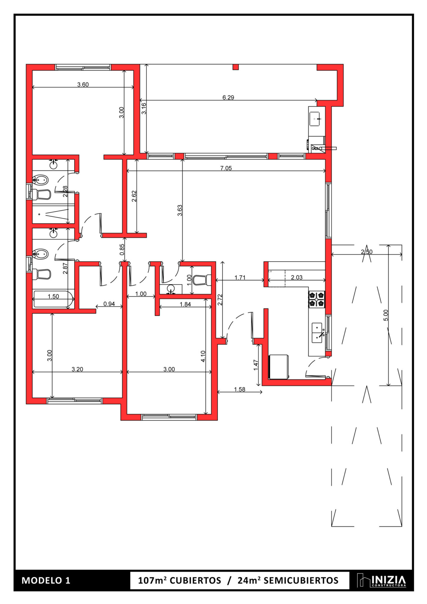 El precio corresponde solo a la construccion de una casa llave en mano de este modelo, con placares y cocina completa con muebles de bajo y alza mesada. El valor de este modelo con lote, depende del barrio donde se quiere construir (consultar)